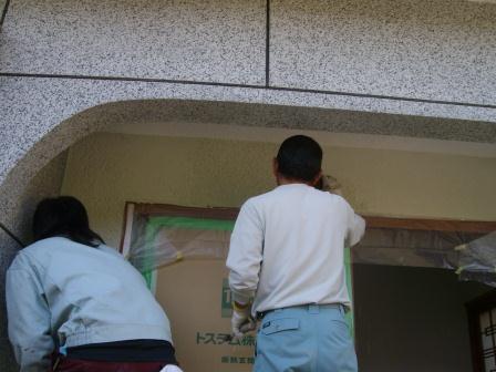 | 玄関の雰囲気が暗いので明るく、欄間(ランマ)入りの玄関サッシも変えて欲しいとのご要望でした。 家全体の外壁が洗い出しで和風調だったので、違和感のないように?き落しの外壁にしました。 最近の住宅では、洗い出しも、かき落しもあまり見られなくなりましたので、作業風景も新鮮に感じました。 施主様も職人さんの技術と以前と雰囲気が変わったと感激しておられました。 |