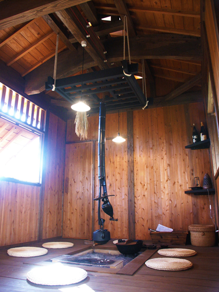 およそ7~8帖の天然木で作った囲炉裏はコーナーにお酒を並べ、毎晩の宴会で心も体も温まっているようです。