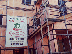 | 断熱がないと、暖かい室内から寒い屋外へ温度が逃げていきます。夏場の場合は逆に、涼しいエアコンの前から、暑い屋外へ・・・。断熱しない場合だと、約8割の熱が逃げていくと言われています。この熱移動を阻止するのが断熱材です。しかしながら、柱と柱の間にグラスウール等の断熱材を挟み込む内断熱工法では、外壁との間に壁内結露が生じる恐れがあります。これは木材の腐れやシロアリ発生の大きな要因となります。 当社では、柱の外側からフェノールフォーム系の断熱材で包み込む外断熱工法を採用しています。この方法だと、床下まで常に乾燥した状態を保てます。更にこの断熱材は、万が一の火災の際にも有毒ガスを発生せず、環境にも安全です。 |
